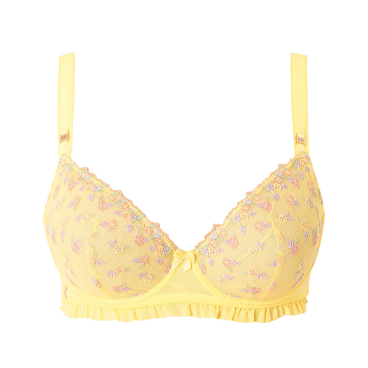 | Composition | Tulle : 100% Polyamide. Fil de broderie 100% Polyester. Matière ajourée : 86% Polyamide 14% Elasthanne. Doublure bonnets 100% Polyamide. Doublure côté 86% Polyamide 14% Elasthanne. |