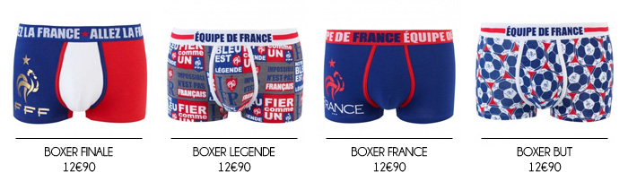Et ainsi est né notre partenariat avec les patrons du football français : la gamme de boxers officiel FFF. Ils portent haut les couleur de notre équipe nationale, et permettent de laisser dépasser du pantalon l’amour inconditionnel porté à notre équipe, grâce aux bandeaux « Equipe de France » ou « Allez la France ». Classe, non?