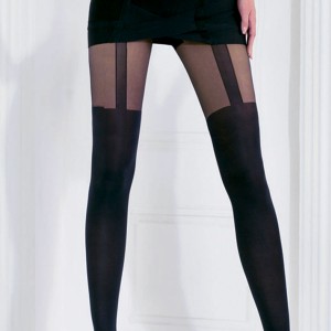 Le collant deux en un ! Ultra sobre en noir opaque dans sa partie basse, ce collant dévoile son potentiel sexy au niveau des cuisses grâce à l'effet porte-jarretelles en trompe l'oeil ! De la taille 2 (M) à la taille 4 (XL). Pointes renforcées et coutures plates.