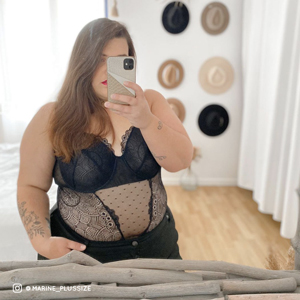 Le body INSOLENTE va en séduire plus d'un.e ! Et pour cause… Il est coupé dans des matières fines et délicates qui jouent le jeu de la transparence. Les bonnets armaturés mais non coqués sont couverts d'une dentelle géométrique à grosse écaille. Le buste est coupé dans un joli tulle plumetis au centre, lié à la même dentelle esprit haute couture sur les côtés. Le dos est aussi tout en tulle plumetis. La fermeture au dos se fait par 3 agrafes sur 3 positions. Pour votre confort, le fond est doublé d'un gousset 100% coton. La fermeture à l'entrejambes se fait par 3 pressions sur 2 positions. Ce modèle est proposé pour les poitrines moyennes à généreuses, du 95C au 110E.