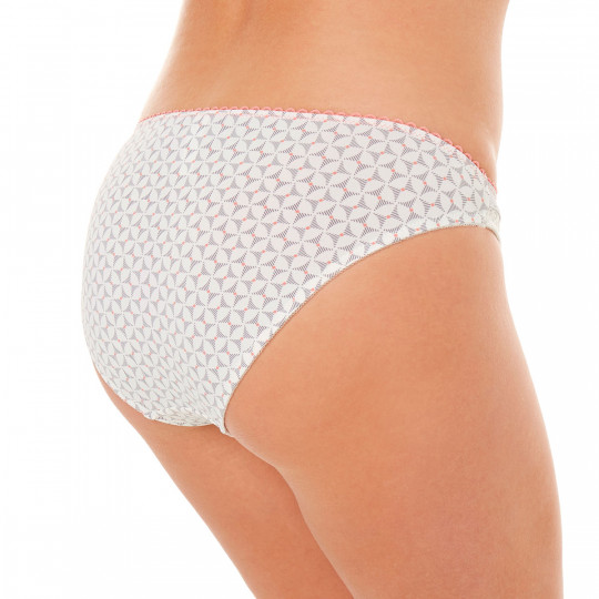 Dites oui à la douceur avec la ligne RAPPORTEUSE ! Le slip est entièrement coupé dans une douce microfibre à l'imprimé cravate inédit. La taille est habillée d'un galon de dentelle associé à une fine bande de microfibre imprimée chevron et des élastiques fantaisie coloris pêche. On retrouve ce même coloris sur le petit nœud plat qui orne la ceinture. Pour votre confort, le fond est doublé d'un gousset en pur coton. Ce modèle est proposé dès le 38/40 et jusqu'au 46/48.