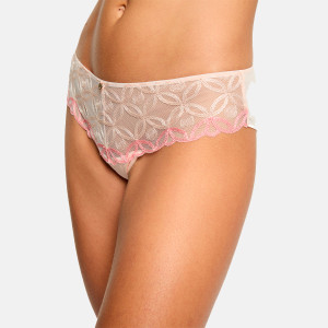 | Composition | Tulle : 100% Polyester. Fil de broderie : 100% Polyester. Matière secondaire : 81% Polyamide 19% Elasthanne. Matière ajourée : 83% Polyamide 17% Elasthanne. Gousset : 100% Coton. |