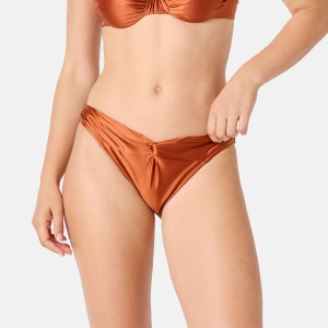 • Slip de maillot de bain en microfibre brillante cuivrée