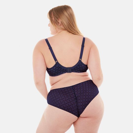 Les bonnets C, D et E ont aussi le droit à leur modèle ATTACHANTE ! Ce soutien-gorge en dentelle couleur indigo et caramel dispose d'armatures pour une forme emboîtante spécialement conçue pour apporter un grand maintien à la poitrine. Travaillés en microfibre et en dentelle géométrique, ces bonnets garantissent une tenue optimale, tout en élégance. A l'entre-seins, un petit nœud avec finitions métal habille l'entre-bonnets. Les bretelles sont larges et réglables dans le dos avec une finition en cheminée. La fermeture se fait par 3 attaches sur 3 positions. Ce modèle est disponible du 85D au 110E.